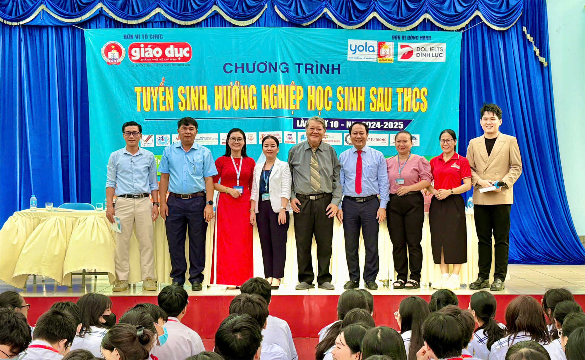 Bên cạnh đó, chương trình còn có sự hiện diện của Ban Giám hiệu, thầy cô giáo trường THCS Trần Quang Khải, cùng đại diện các trường THPT tham gia tư vấn tuyển sinh.