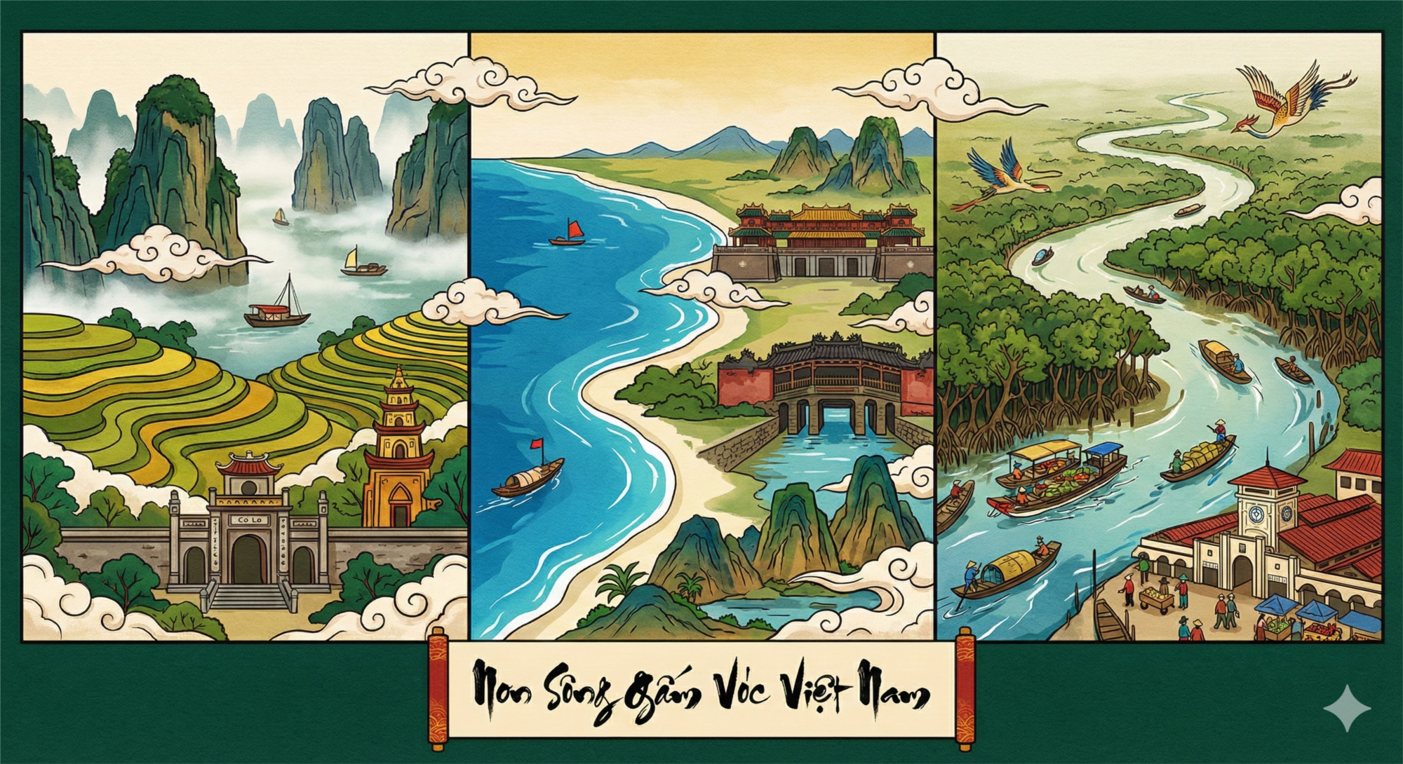 Để "gắng sức" xây dựng non nước ngàn thu, trước hết, chúng ta phải HIỂU và YÊU lấy từng tấc đất, ngọn rau của Tổ quốc mình. Nhân dịp đầu năm mới 2026, Thư viện trường xin trân trọng giới thiệu bộ sách quý, được ví như bức tranh toàn cảnh về "hình hài đất nước": Bộ 3 tập "Việt Nam non sông gấm vóc".